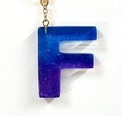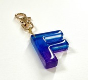 人気のアルファベットFのキーホルダーです。レジンを使用して作成されており、透明感が美しい仕上がりとなっています。