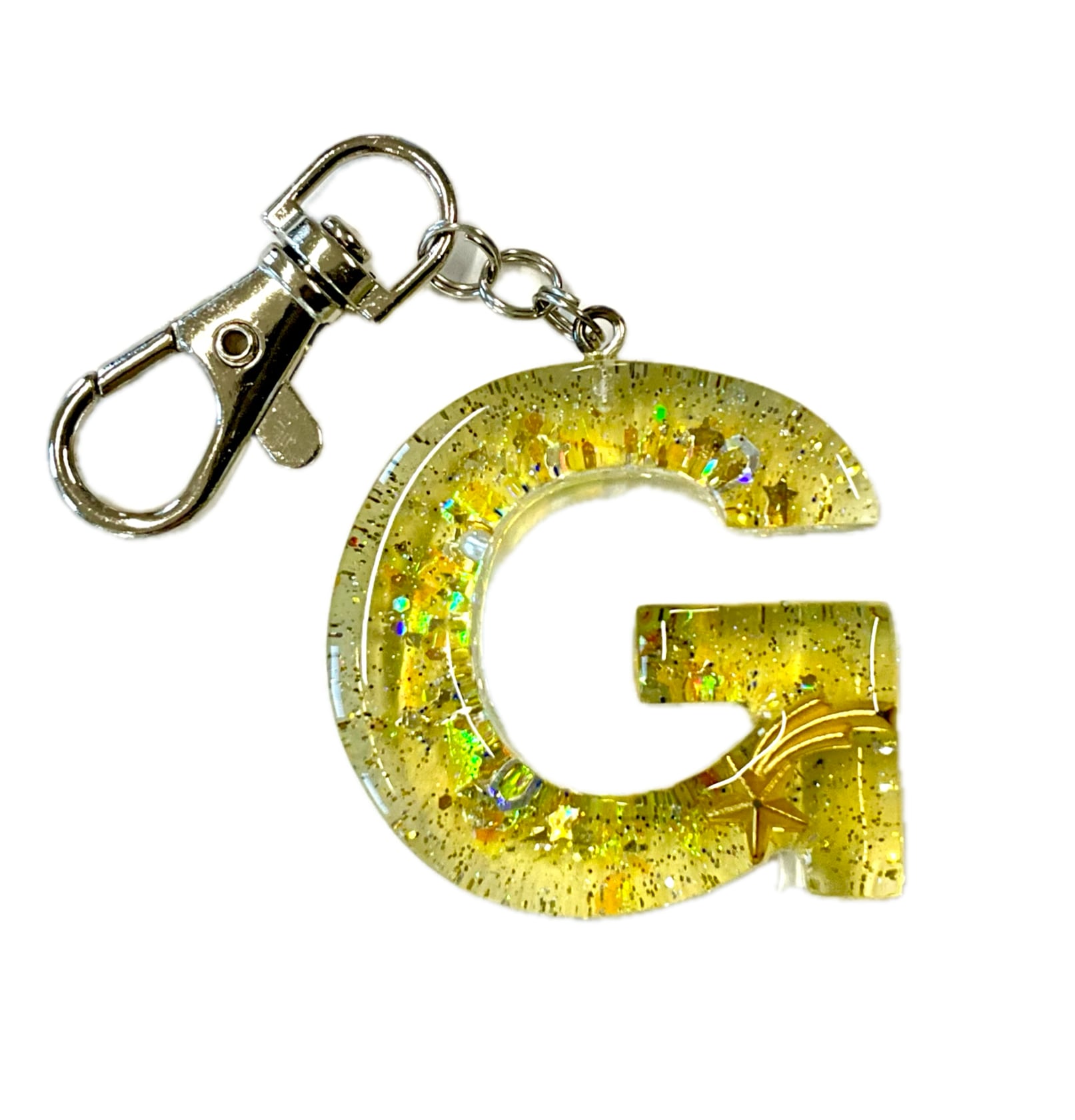 人気のアルファベットGを透明感があるゴールドのレジンで仕上げました。