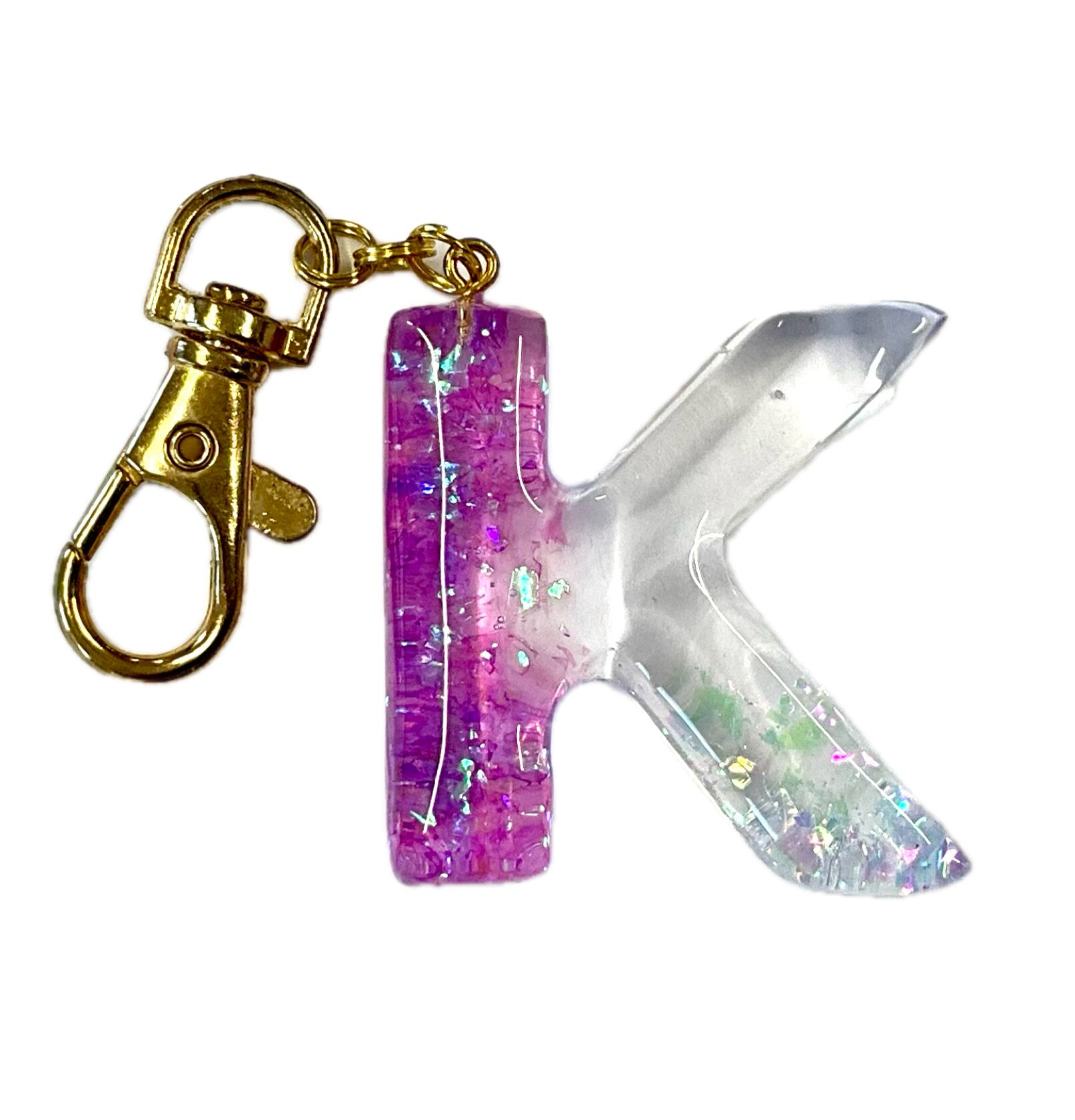 人気のアルファベットKを透明感がある紫色のレジンで大人っぽく仕上げました。