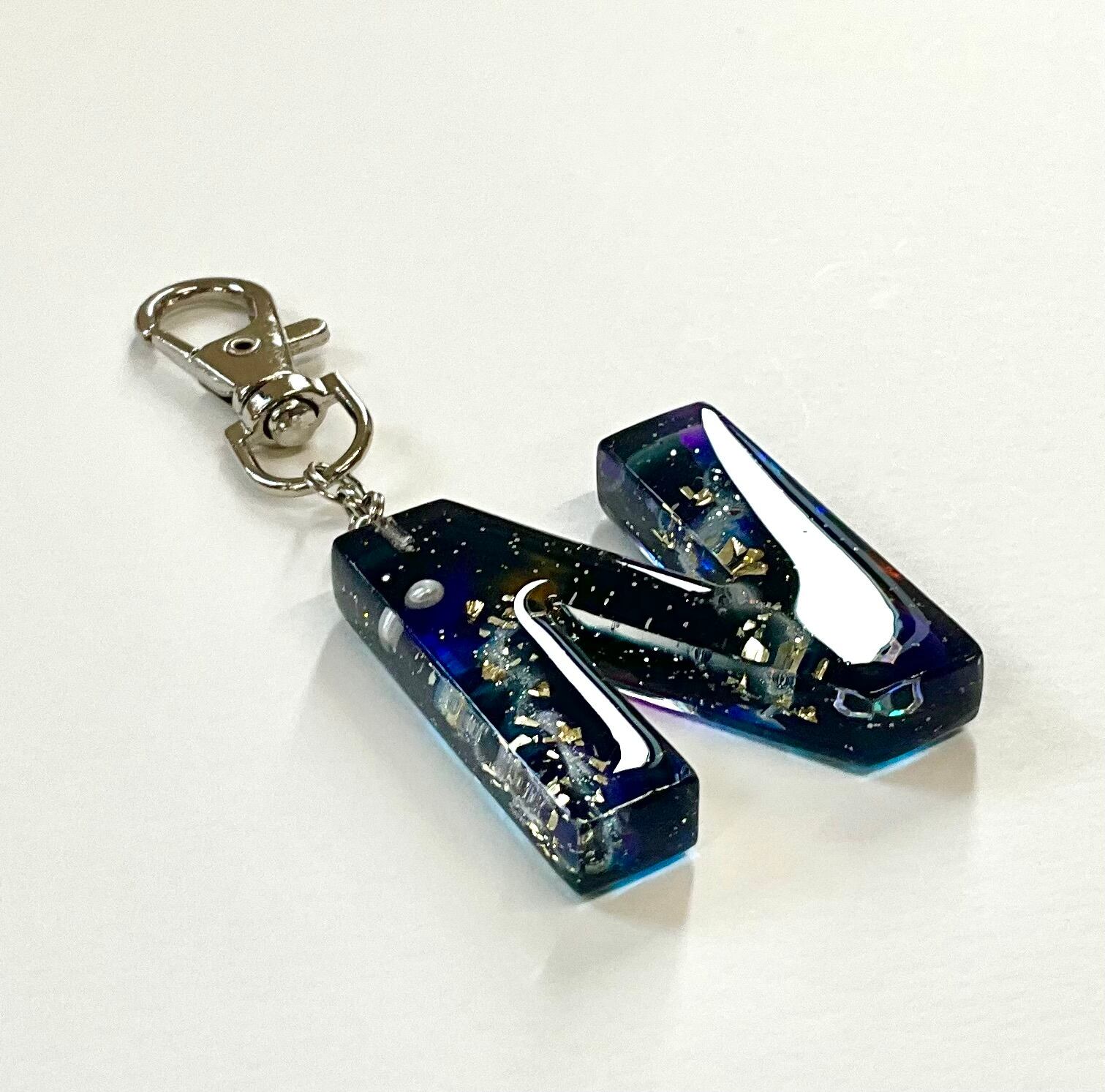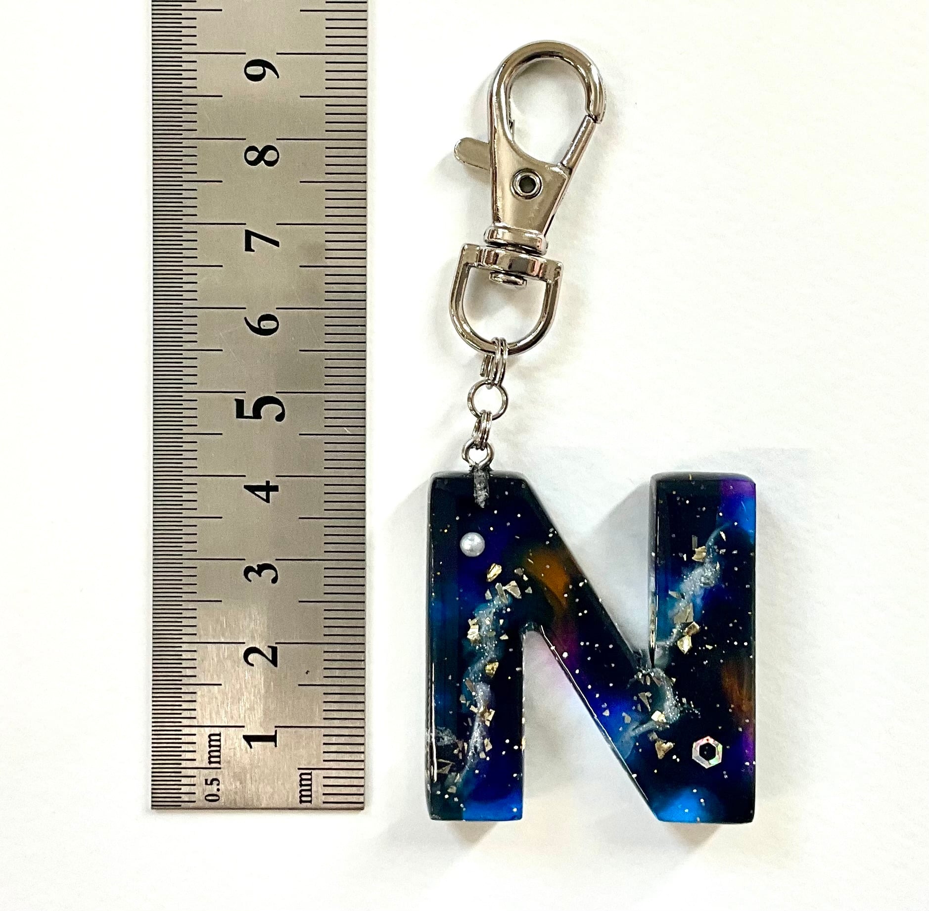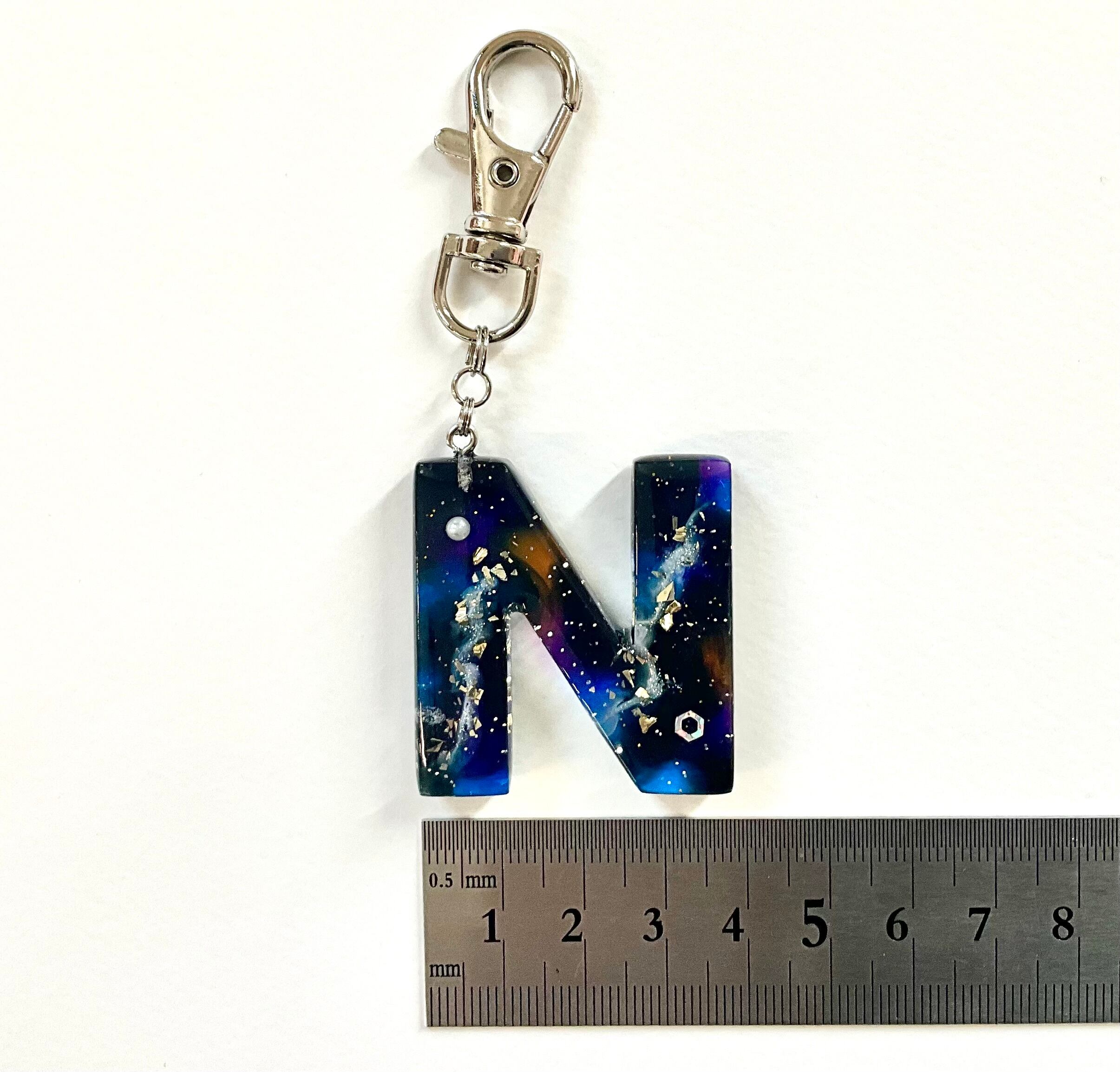 人気のアルファベットNのキーホルダーです。レジンを使用して作成されており、透明感が美しい仕上がりとなっています。
