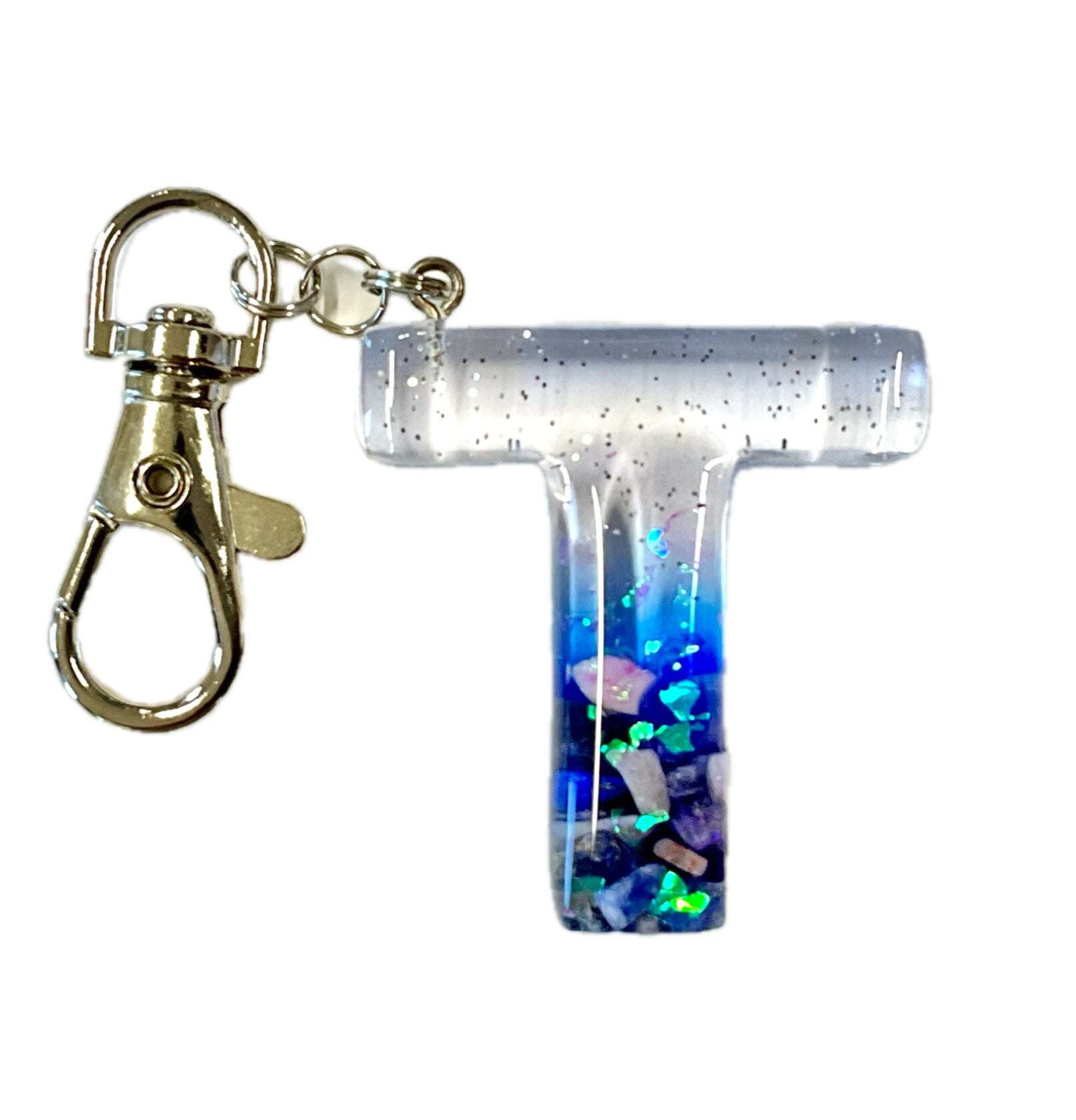 人気のアルファベットTのレジンキーホルダーです。