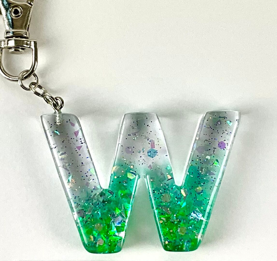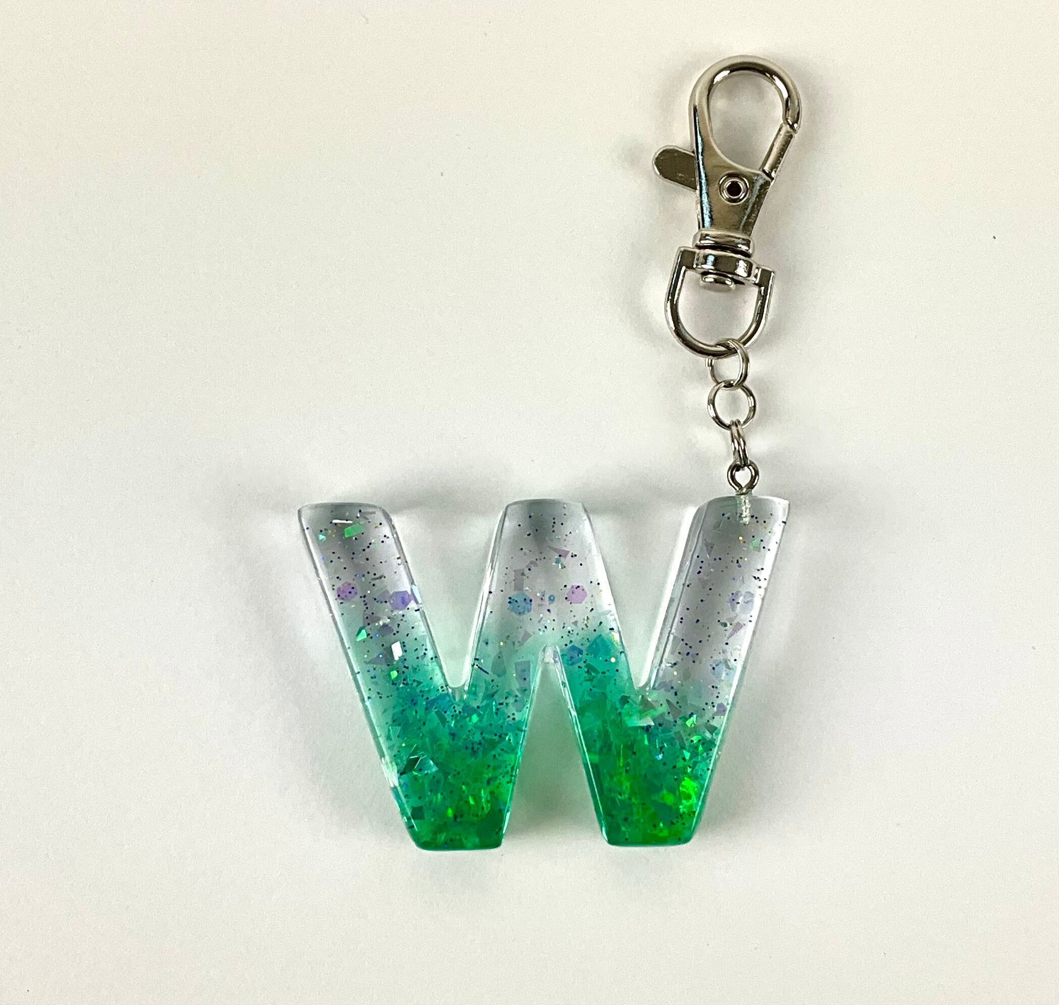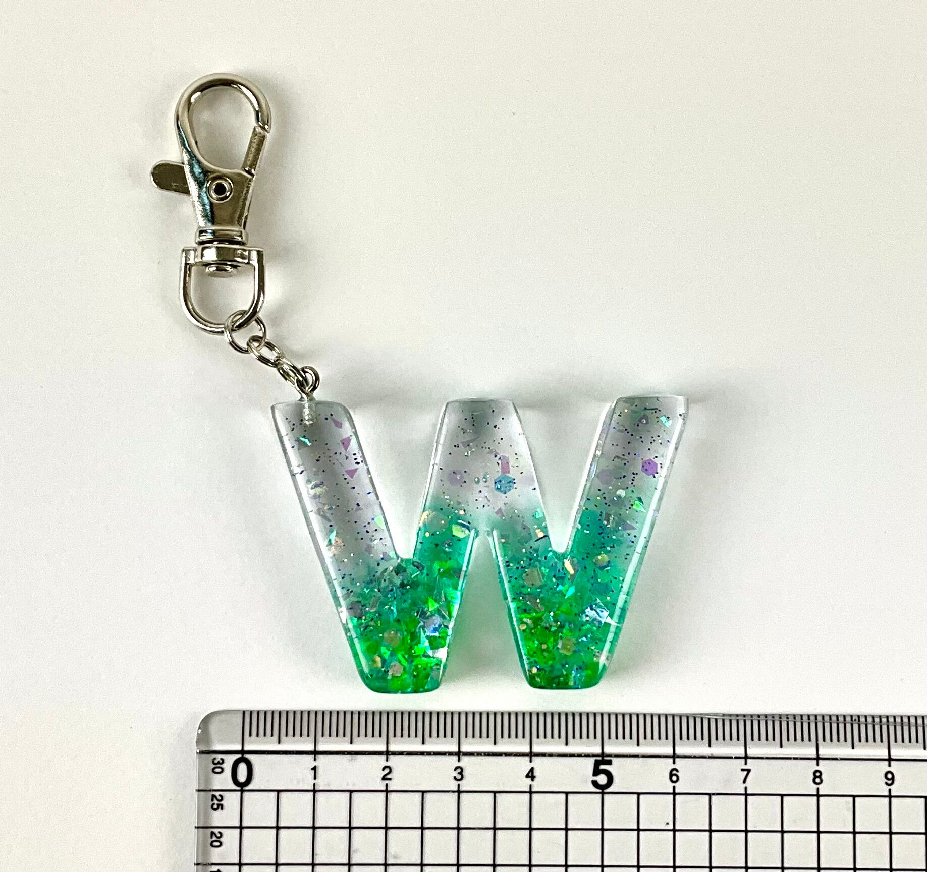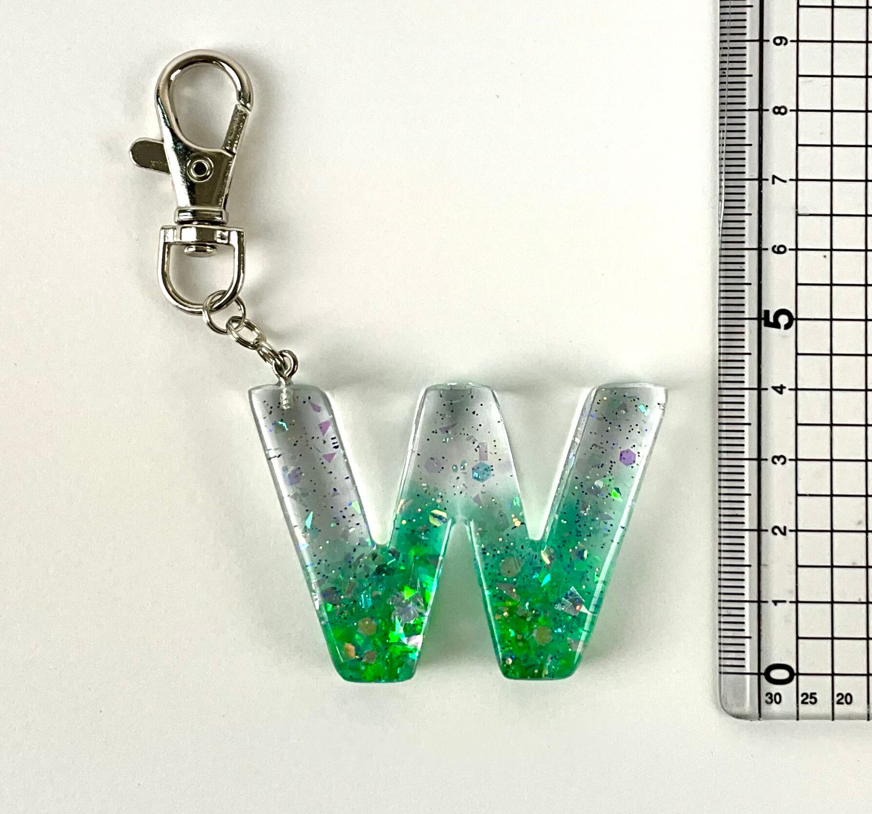 人気のアルファベットWのキーホルダーです。レジンを使用して作成されており、透明感が美しい仕上がりとなっています。