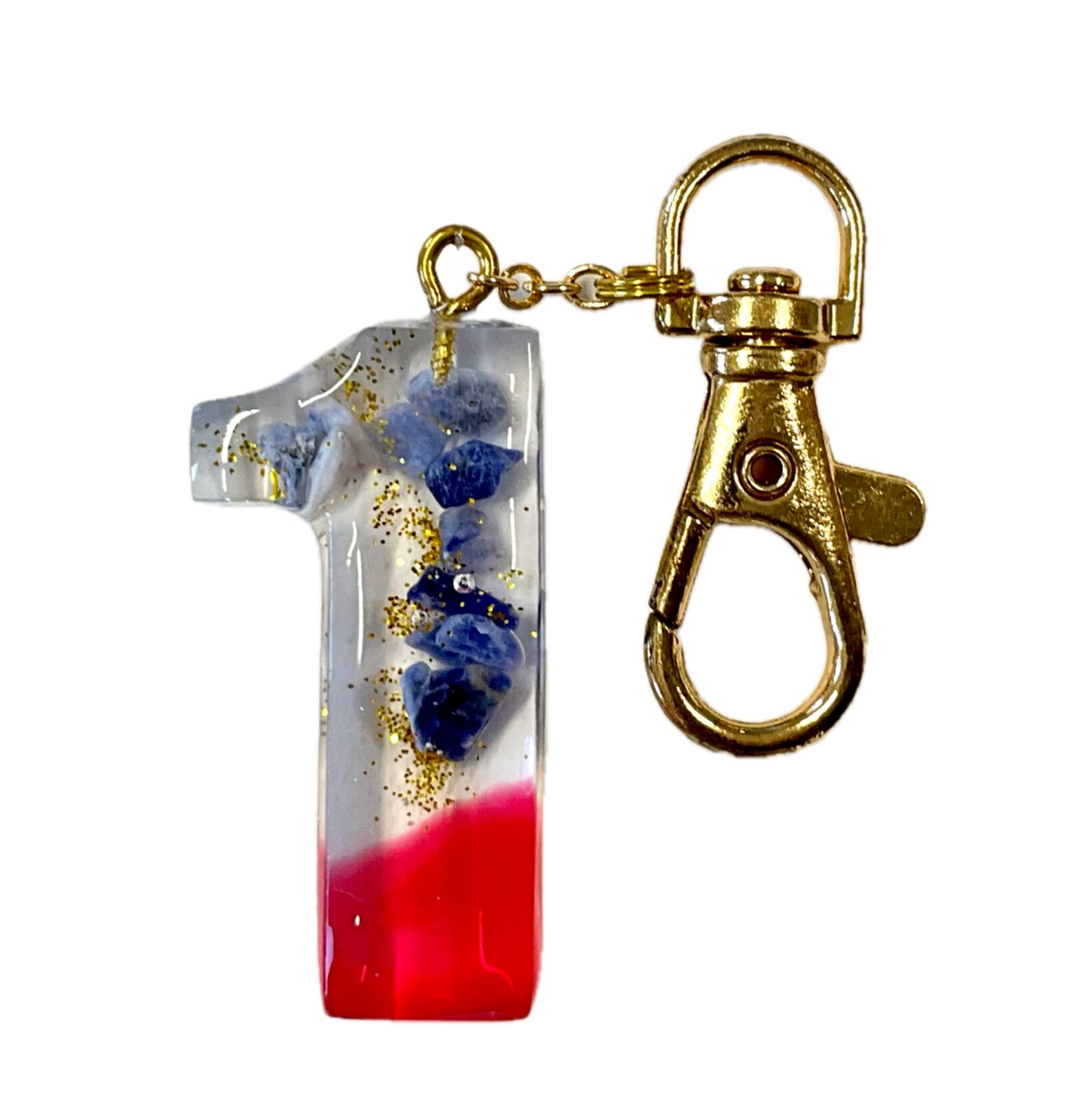 人気の数字1のキーホルダーです。レジンを使用して作成されており、透明感が美しい仕上がりとなっています。