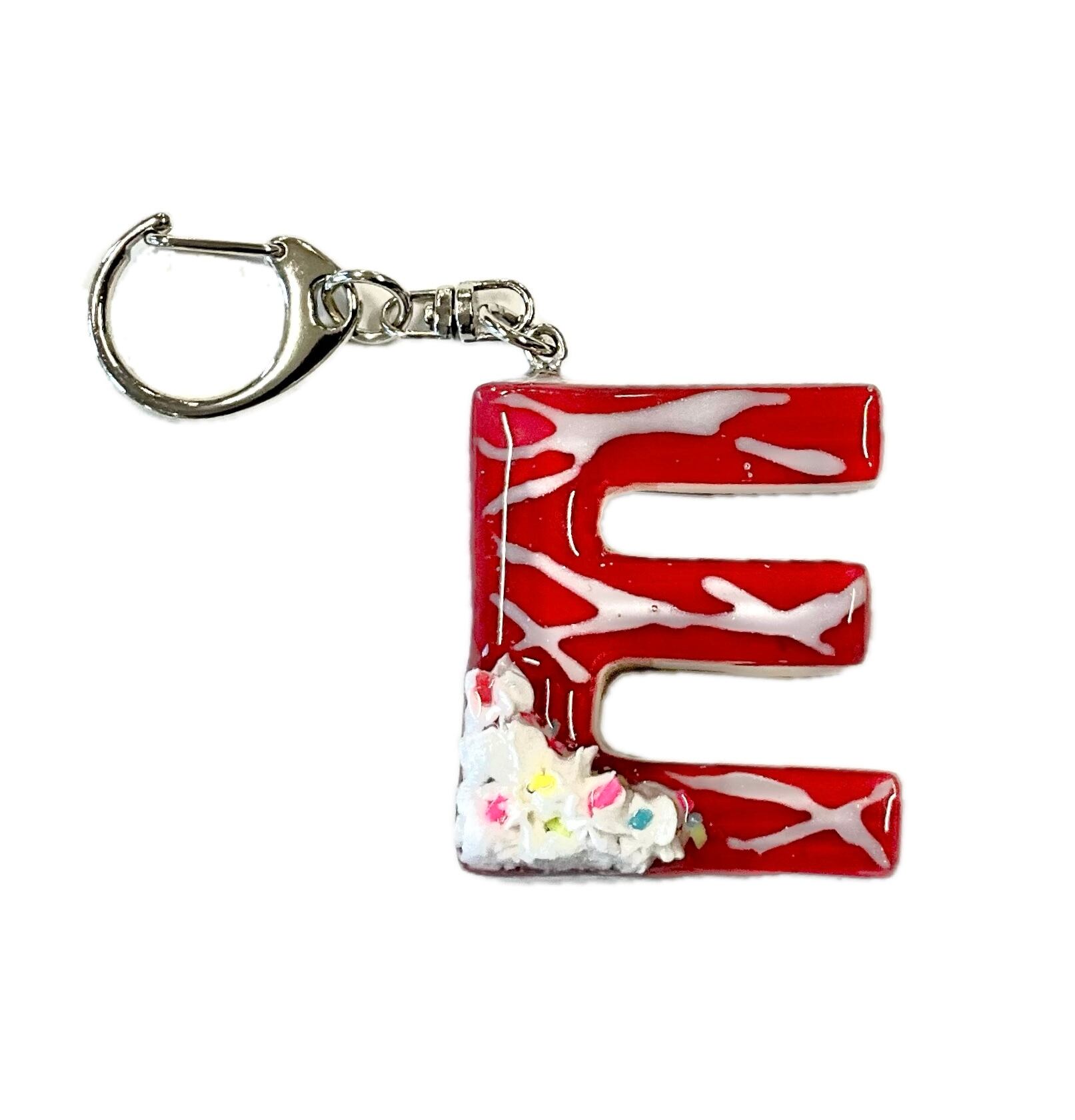 人気のアルファベットEを透明感がある赤を基調としたレジンで仕上げました。