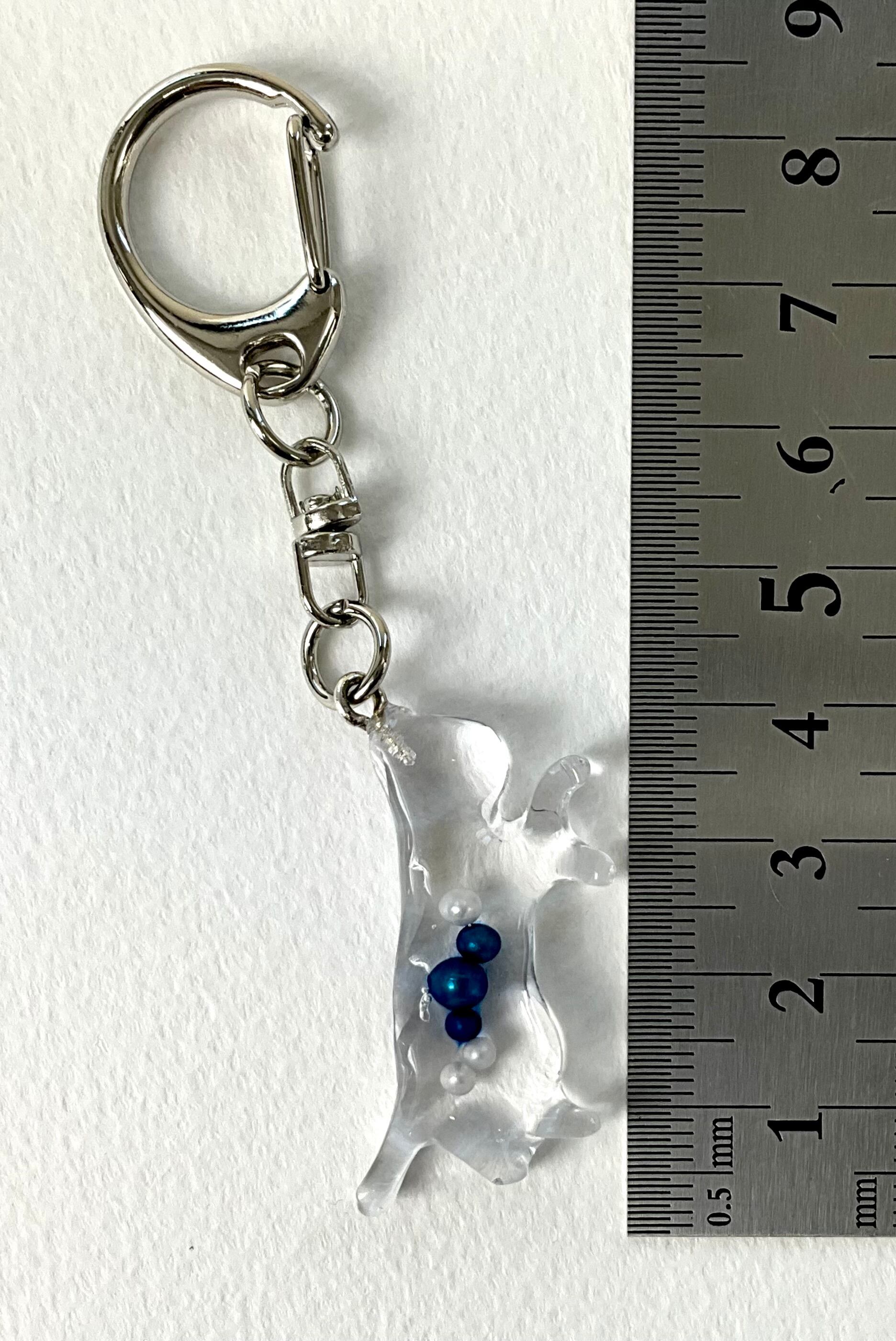 人気の猫のキーホルダーです。レジンを使用して作成されており、透明感が美しい仕上がりとなっています。