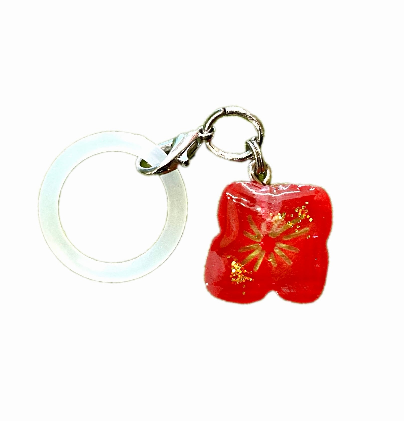 パッとを惹く鮮やかな赤のお花モチーフが、