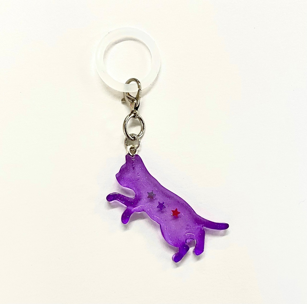 愛らしいデザインの「アンブレラマーカー 猫-006」です!立ち姿の猫が紫を基調にしたこのアイテムは、見る人を惹きつける魅力を放っています。