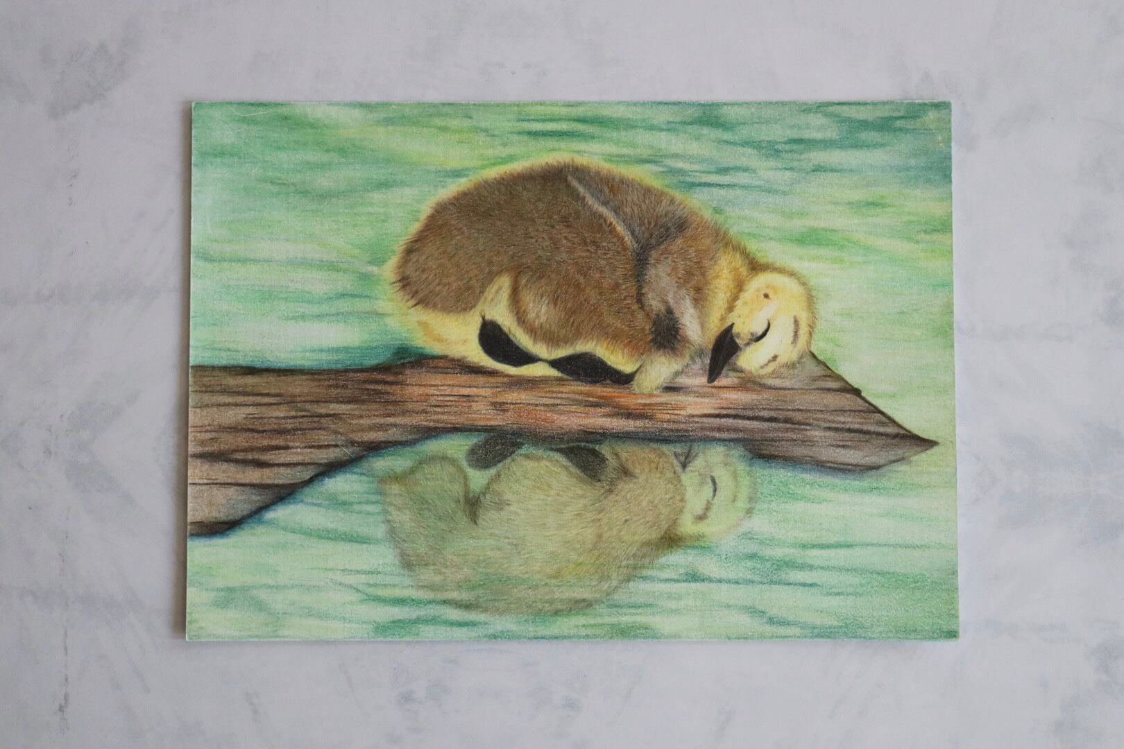 水彩絵の具の特性上、水分の加減により紙に多少の「ヨレ」や「しわ」が発生している場合があります。これは自然な風合いであり、作品の味わいとしてご理解ください。