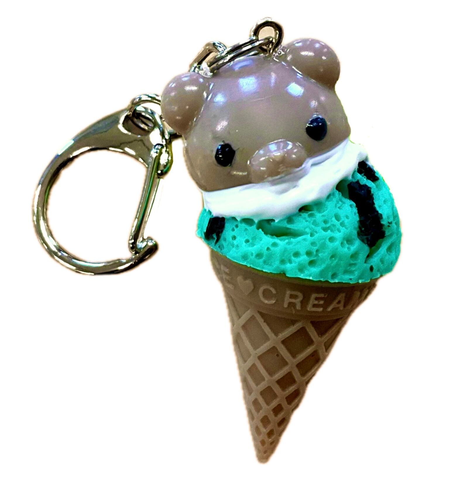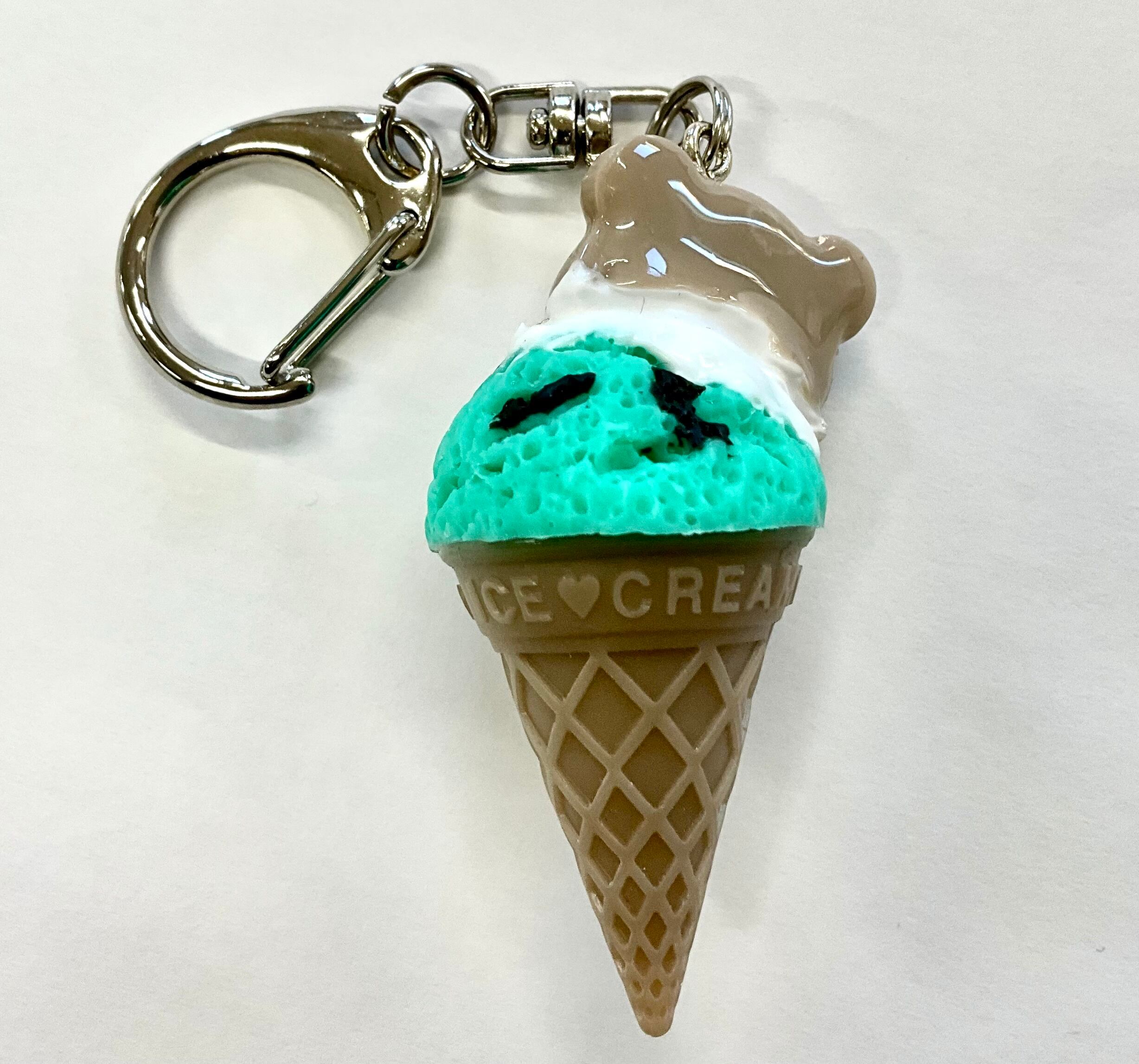 チョコミントにブラックチョコレートを絡めたの美味しそうなアイスクリームのキーホルダーです。