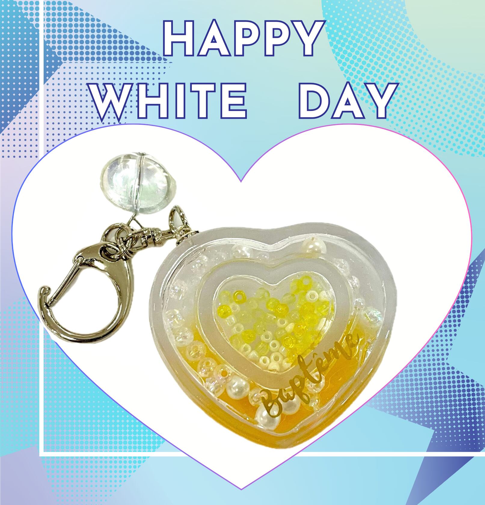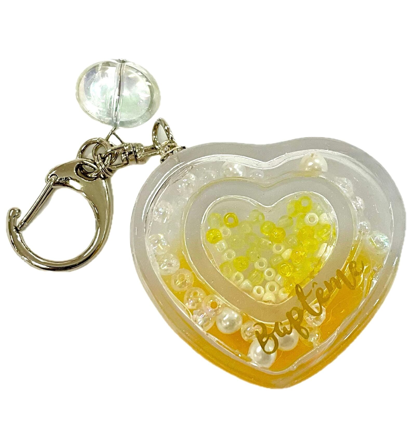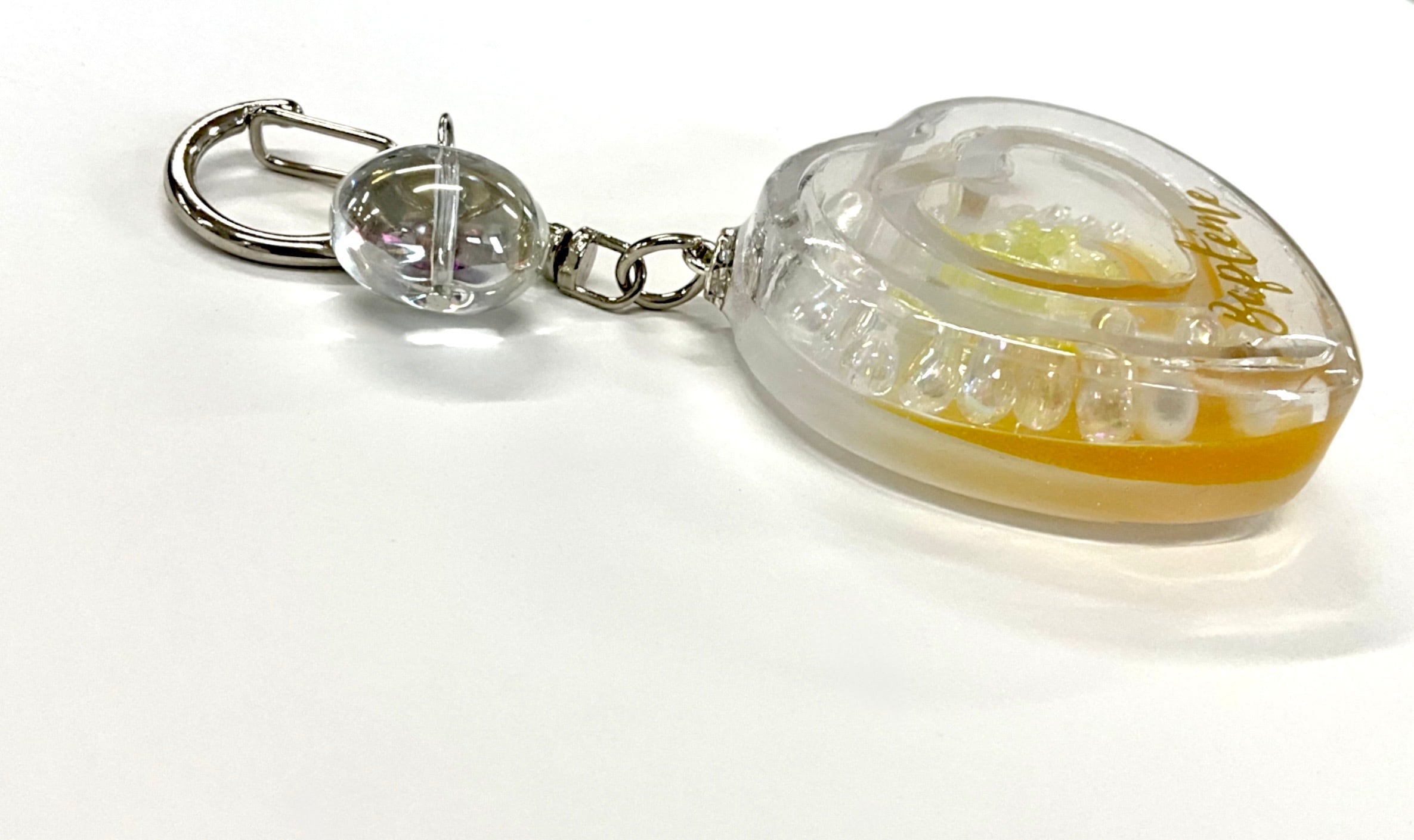 ハート型のシェイカーにパールと黄色系のビーズを閉じ込めて透明感のある大人っぽく上品な仕上がりに!!
