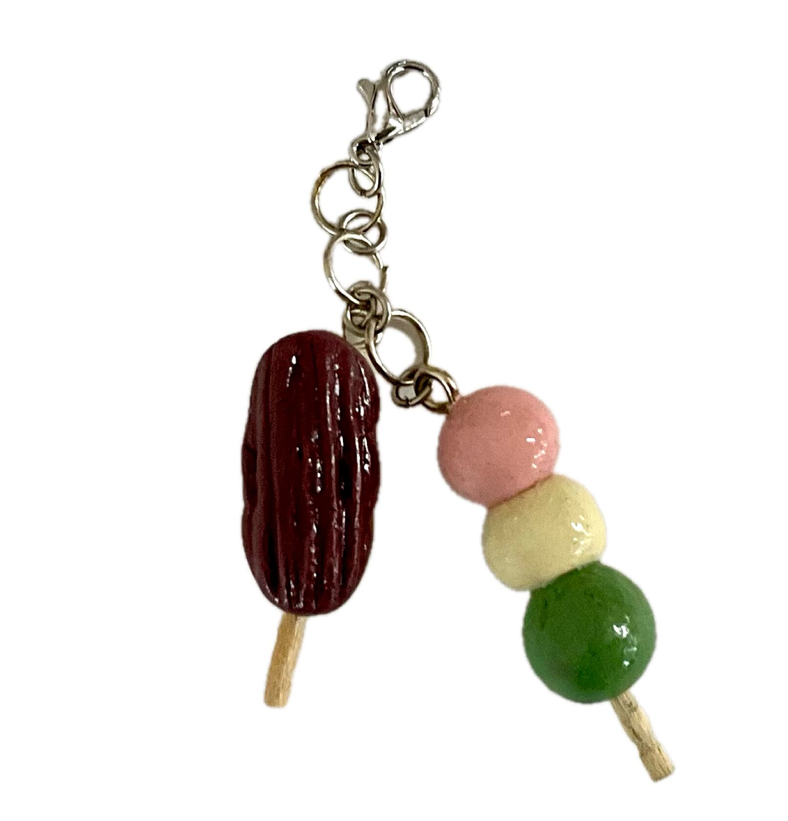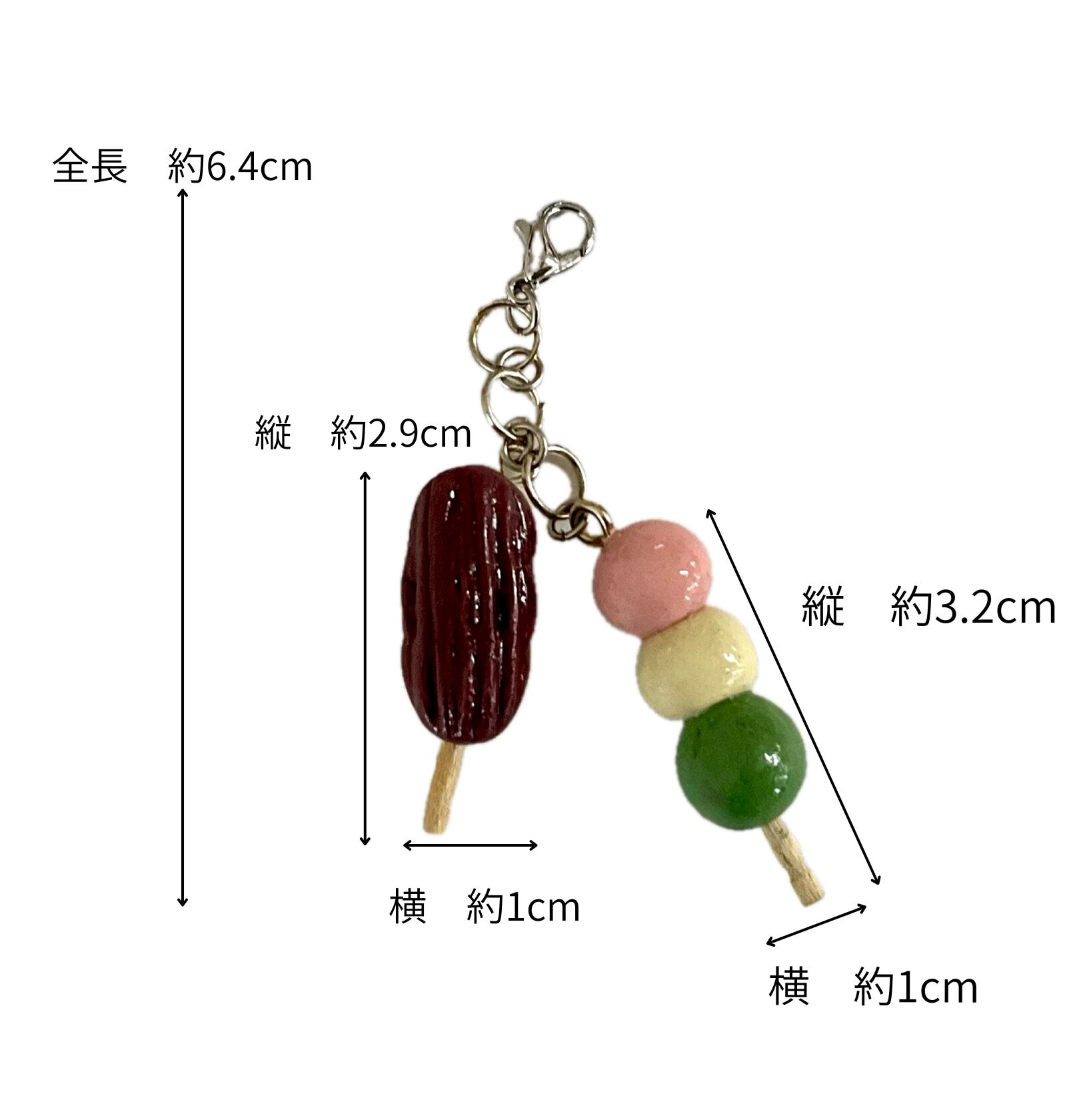 春を感じる定番の「三色団子」と、たっぷりのあんこがのった「あん団子」の2種類をセットにしたチャームです。